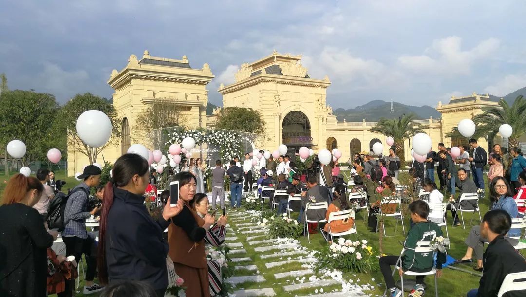 自愛莉絲莊園開園迎客以來,已先后接待超過3.5萬對新人在此拍攝屬于自己的甜蜜婚紗照。然而,在愛莉絲莊園舉行婚禮儀式的,這還是第一對,祝福他們。