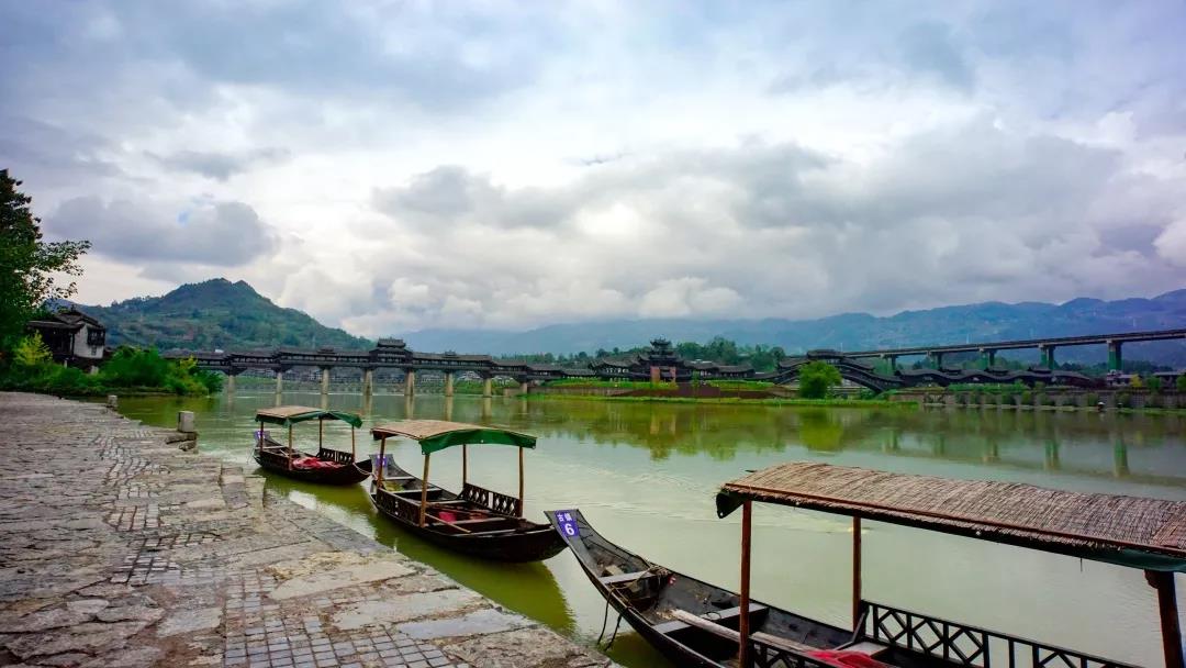 濯水古鎮(zhèn)的風(fēng)雨橋橫跨于阿蓬江和蒲花河上,長658米,為世界第一風(fēng)雨廊橋,分為橋、塔、亭三部分。風(fēng)雨廊橋橋身為純木制結(jié)構(gòu),是濯水古鎮(zhèn)必看風(fēng)景。