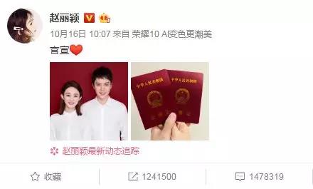 趙麗穎和馮紹峰在微博官宣結(jié)婚!