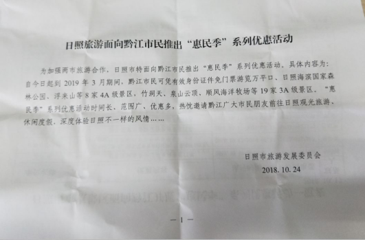 即日起,黔江市民憑有效身份證,可免費暢游日照27個旅游景區(qū),如此豐厚的優(yōu)惠條件,舍日照其誰!