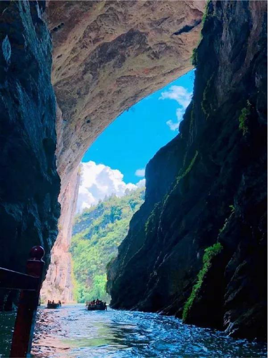 蒲花暗河全長1.6公里,屬典型的喀斯特地貌。暗河內(nèi)崖壁險絕,水入洞天,主要景點有水上天生三橋、蒼天有眼、暗河、大漏斗、間歇泉、赤穴、絕壁棧道、蒲花河峽谷等靚麗奇觀,風光秀美景色宜人。兩岸山谷如少女般亭亭玉立,凝望蒲花暗河歸海而去,亙古未變。河谷內(nèi)溪水清澈見底,白鷺成群,魚蝦豐饒。蒲花暗河全年平均氣溫15℃,夏天最高氣溫31℃,其中溶洞內(nèi)氣溫全年保持恒溫22℃,素有中央空調(diào)的美稱。