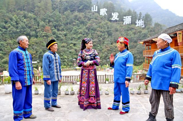 土家族的山歌對唱,隨時隨地都可以唱,從來不需要搭建什么舞臺,田野院壩、松林竹海、吊腳樓內、擺手堂上,處處都是山歌的舞臺。