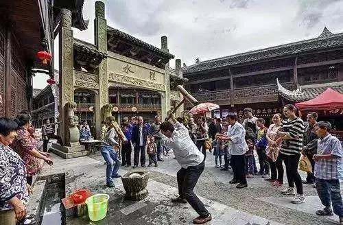 打糍粑一直都是土家族人的傳統(tǒng)習俗。在濯水景區(qū),每逢游客多的時候,當地居民就會自發(fā)展示手工打糍粑的場景,讓八方賓客“打糍粑”、“吃糍粑”,近距離領略土家濃郁的民風習俗。 不少游客還嘗試體驗了一把打糍粑的樂趣。不一會兒,糍粑便做好了,大家爭先嘗了起來,香甜軟糯的糍粑瞬間被一掃而空。