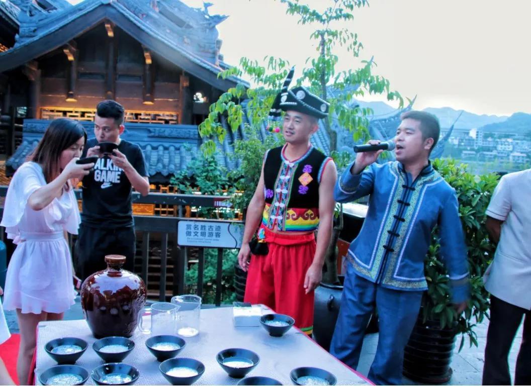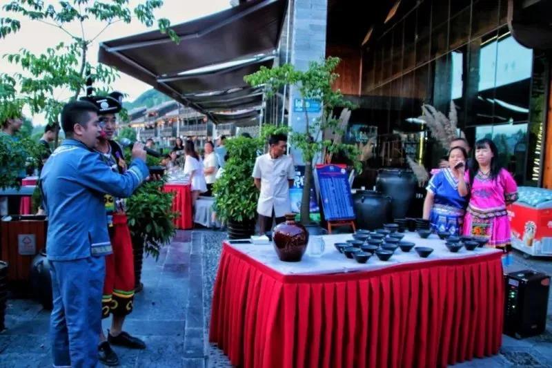 在這里還能體驗土家攔門酒,相傳,這是土家族人熱情好客的民族風俗,把對客人的熱情寄情于酒,對山歌、喝濃酒,客人喝的越多,他們心里就越高興、歡聲笑語間,滿是濃濃的鄉(xiāng)情。