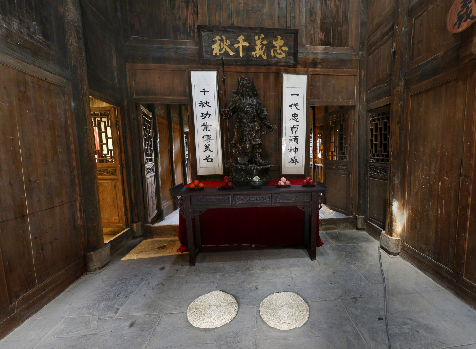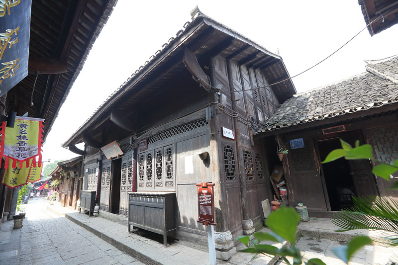 據(jù)古鎮(zhèn)管理方人員介紹,龔家住房為四層全木坡屋頂結(jié)構(gòu)天井合院建筑,平層之下的兩層依江而建,吊腳接地。三、四層設(shè)有干欄式陽臺,天井、過廳、穿堂相連。而平層過廳上,撐起歇山式屋頂?shù)谋d,正面臨街,背臨阿蓬江,地條石經(jīng)歲月濯洗,仍穩(wěn)如磐石。