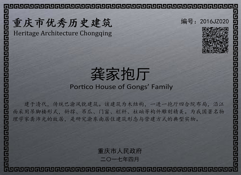龔家抱廳門前,一張牌匾顯示,去年4月,這里已被列入重慶市優(yōu)秀歷史建筑名單,被視作研究渝東南居住建筑形態(tài)與營建方式的典型實物。另外,龔家走出了一個我國有名的氣象學(xué)家龔沛光,濯水古鎮(zhèn)就是他的故居。
