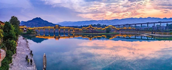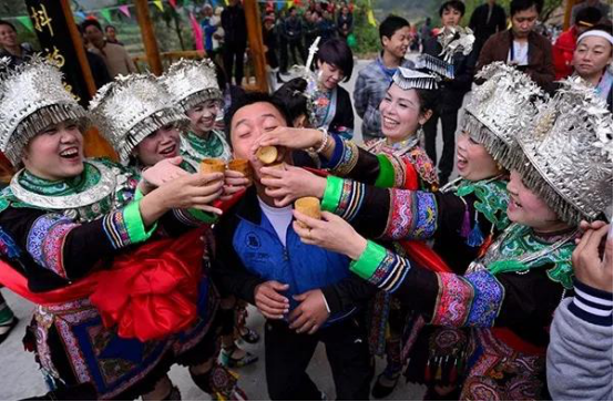 阿哥阿妹們熱情的祝酒歌響徹在廊橋邊