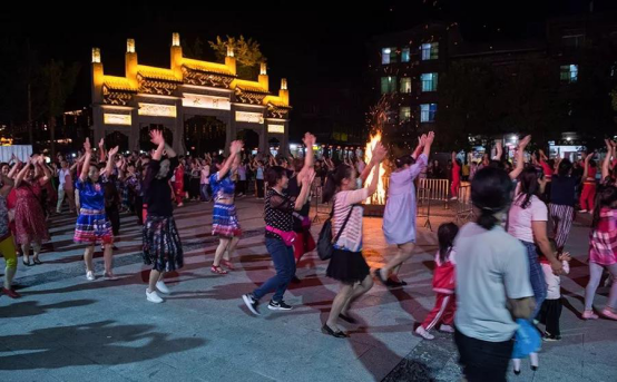 夜幕降臨,白虎廣場(chǎng)燃起熊熊篝火,熱情的土家阿哥阿妹們帶你一起擺手狂歡,歡度激情盛夜!