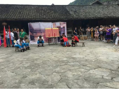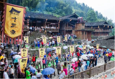 “敬你酒,請你喝,土家山寨請你喝……”走進(jìn)土家十三寨,陣陣歌聲傳來,只見熱情的土家人在寨門口擺上了攔門酒,歡迎遠(yuǎn)方來客。聽說這里還是山歌發(fā)源地。每一位土家人都會唱很多首山歌。