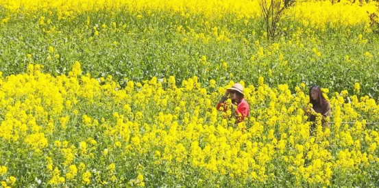 沿江穿行而下,一邊碧水蕩漾,一邊菜花耀眼,水與花、藍(lán)與黃交織在一起,就像一幅清爽的風(fēng)景畫,讓人仿佛置身畫中,連時(shí)間都停止了。