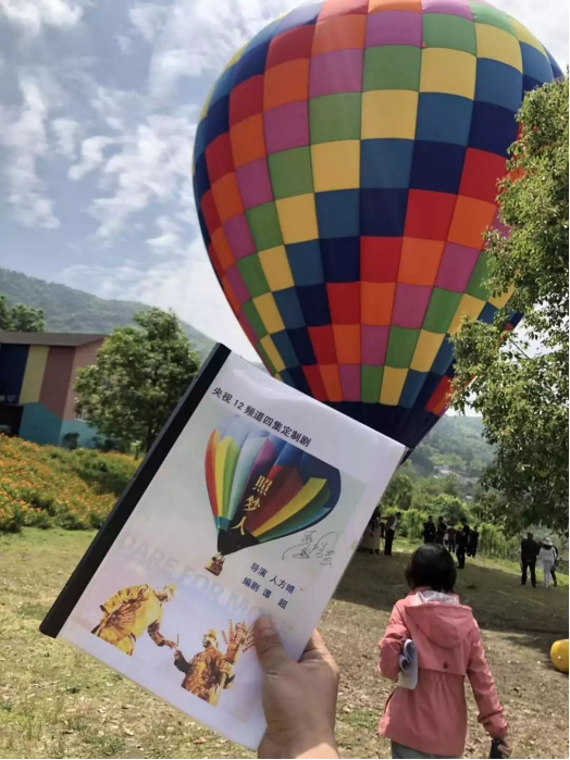 一家三口在愛莉絲莊園坐上美美的熱氣球