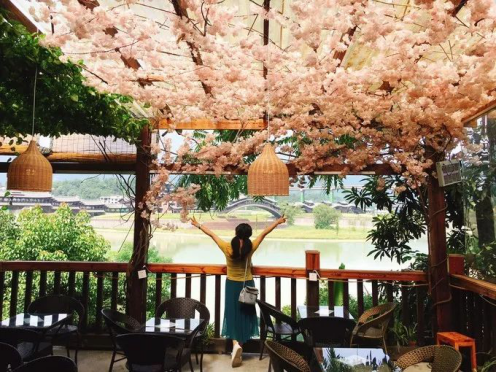 我們到的時候,感覺整個客棧只有我們一家游客,很安靜,比較適合小孩子入住。放下行李,我們趁天沒黑完,就帶小孩去逛了下風(fēng)雨廊橋。