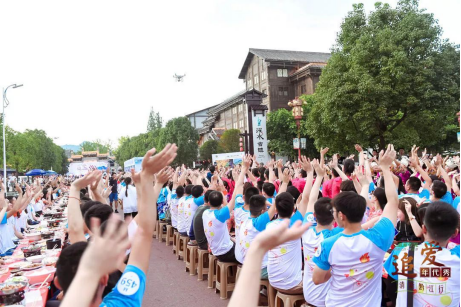 傍晚,青年們來到濯水古鎮(zhèn),黔江的土家民俗風情讓青年們在其中樂享歡愉。極具土家特色的千人長桌宴,冉冉的篝火,激情的擺手舞,組委會更為本次活動恰逢生日的單身青年過了一個集體生日,千人齊唱生日快樂歌,將現(xiàn)場氣氛推向高潮。