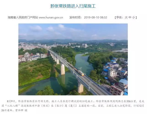 好消息來了!據(jù)人民網(wǎng)報道,近日,黔江區(qū)鐵路建設(shè)指揮部發(fā)布消息稱,目前黔張常鐵路黔江段已進(jìn)入掃尾階段,計劃將在本月25日將進(jìn)行聯(lián)調(diào)聯(lián)試,預(yù)計今年12月底通車。