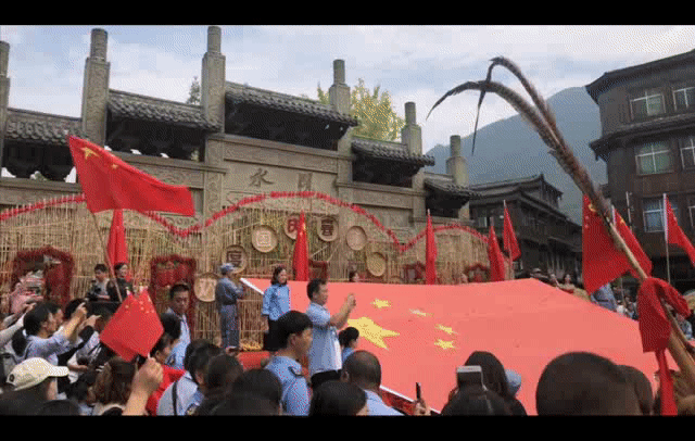 金秋十月,舉國(guó)同慶,萬(wàn)眾歡騰,濯水景區(qū)處處洋溢著歡樂(lè)祥和的節(jié)日氣氛。10月1日上午,為慶祝新中國(guó)成立70周年,在古鎮(zhèn)牌坊大舞臺(tái)前舉行了升旗儀式,來(lái)自世界各地的游客懷著激動(dòng)的心情,手持小國(guó)旗肅立在牌坊前,期待著莊嚴(yán)時(shí)刻的到來(lái),共同祝福偉大的祖國(guó)生日快樂(lè)!