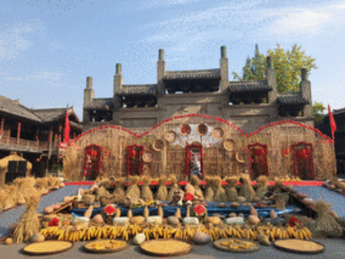 濯水景區(qū)以“喜獲豐收·歡度國(guó)慶”為主題,用農(nóng)作物、農(nóng)耕工具等營(yíng)造國(guó)慶氛圍,特設(shè)美食特色展示區(qū)以及游戲互動(dòng)區(qū),場(chǎng)景設(shè)置與濯水民俗文化完美融合。