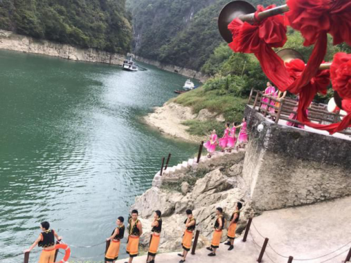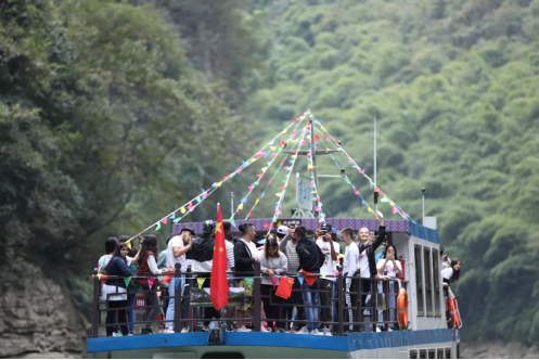 研學(xué)隊(duì)伍在10月6日早上到達(dá)黔江神龜峽,映入眼簾的是神龜峽美景。水深數(shù)十米,兩岸山高50多米,沿途懸崖峭壁,突兀奇峰,兩岸風(fēng)光原始古樸,美不勝收,優(yōu)于大寧河,勝于小三峽,是度假休閑的好地方。