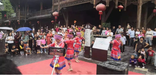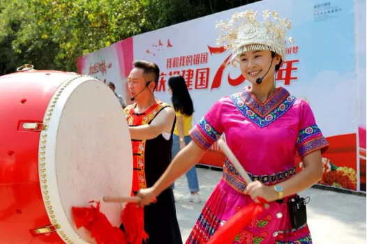 同時,景區(qū)還組織了巡游互動活動,向游客推廣普及非物質(zhì)文化遺產(chǎn)南溪號子、土家山歌等。在濯水景區(qū)喝攔門酒、品黔江雞雜、唱土家山歌、跳擺手舞,與毛澤東特型演員互動,重現(xiàn)開國大典盛況,展現(xiàn)了“民族大團結(jié)、和睦一家親”的生動場景。
