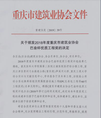 巴渝杯優(yōu)質(zhì)工程獎(簡稱"巴渝杯獎" ),是重慶市市級優(yōu)質(zhì)工程獎,也是重慶市建設(shè)工程質(zhì)量最高榮譽獎。巴渝杯獎的評選對象為重慶市行政區(qū)域內(nèi)已經(jīng)建成且投入使用的新建建設(shè)工程。重慶市建筑業(yè)企業(yè)在重慶市以外國內(nèi)其他省市承建的符合參評條件且未參加當(dāng)?shù)厥〖墐?yōu)質(zhì)工程獎評選的,經(jīng)批準(zhǔn)也可參加巴渝杯獎評選。巴渝杯獎每年評選一次,獲獎工程的數(shù)額原則上不超過50個。