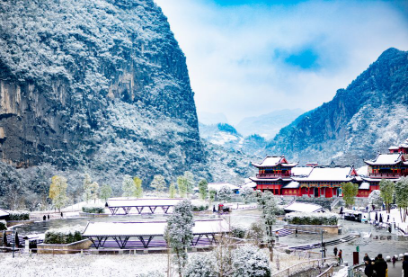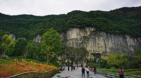 這里,有大世界基尼斯之最——高達(dá)123米的巨幅摩崖觀音像;有驚險絕倫、垂直高度逾300余米的懸崖絕壁棧道;有回音壁、慈航橋等驚奇美妙的體驗(yàn)。