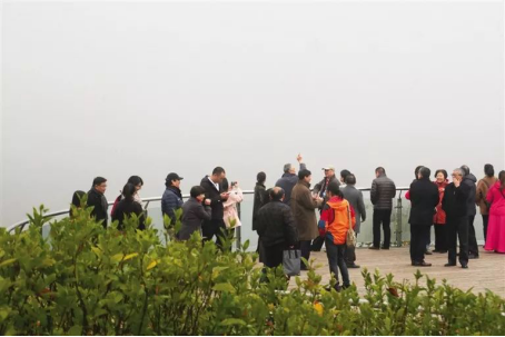 冬日的芭拉胡,晨霧繚繞,縹緲靈動(dòng),似一條綠色絲絳,將老城新城緊緊連在一起,繪就出一幅城景相融的水墨丹青。采風(fēng)團(tuán)的作家們來到這里,聽回音、走玻璃棧道,漫步峽谷之間,親歷峽谷峽江的神秘和秀美。