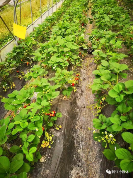 一排排草莓苗茂果紅