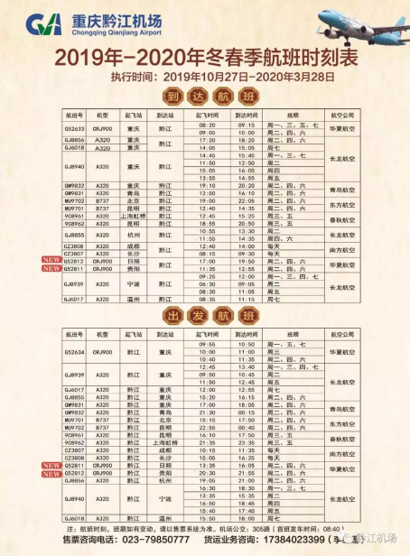 屆時,黔江=上海航線將由目前的每周2班加密至5班