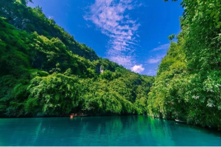 在蒲花暗河,行至山路的盡頭,暗河猶如翡翠一般鑲嵌在群山之中,碧波蕩漾的江上飄著幾葉扁舟,清波靜,幽谷深,乘船開啟“三天兩夜”的奇妙之旅,聆聽大自然的回響。“天理良心”是世世代代生活在這片土地上的人們始終秉持的信念,景仰一雙天眼,懷著對自然和天道的最高敬畏,人與自然和諧相處,生生不息。