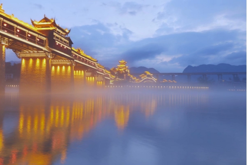 濯水景區(qū)位于重慶市黔江區(qū)東南部,地處烏江第一大支流——阿蓬江畔,為阿蓬江國家濕地公園的重要組成部分,面積4.8平方公里,渝懷鐵路、包茂高速、319國道穿境而過,交通極為便利。景區(qū)內(nèi)江河交匯,濯水古鎮(zhèn)風(fēng)華悠遠(yuǎn),風(fēng)雨廊橋跨江河、連兩岸、通三地,似仰天長嘯飛龍欲絕塵而去;蒲花暗河蜿蜒曲折,婀娜多姿,水上天生三橋猶如鬼斧神工。