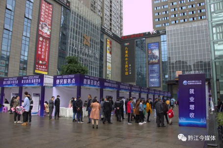 今天是周末,有著黔江解放碑之稱的大十字購物廣場(chǎng)人頭攢動(dòng),熱鬧非凡一場(chǎng)特殊的招聘會(huì)和展銷會(huì)在這里舉行。