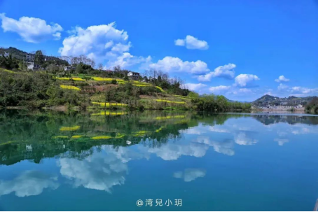 陽春三月,阿蓬江流水清澈,碧水藍天,河岸兩畔山峰一字排開,江水花間過,花在水中開。仿佛進入了天人合一的詩意境界,返璞歸真的自由天地。