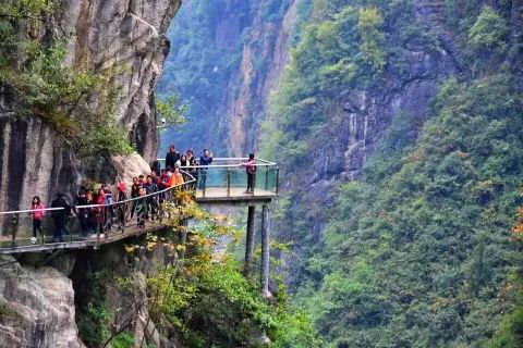 這里有凈長212米、寬2.4米、落差高達248米的5D玻璃觀光吊橋橫跨峽谷兩岸,最具特色的是橋的兩端設(shè)計了各6米長的5D視覺玻璃,可呈現(xiàn)出海洋、群山、游魚等動態(tài)效果,伴有多色彩玻璃映襯,具有很強的立體感。