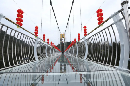 這里有凈長(zhǎng)212米、寬2.4米、落差高達(dá)248米的5D玻璃觀光吊橋橫跨峽谷兩岸,最具特色的是橋的兩端設(shè)計(jì)了各6米長(zhǎng)的5D視覺玻璃,可呈現(xiàn)出海洋、群山、游魚等動(dòng)態(tài)效果,伴有多色彩玻璃映襯,具有很強(qiáng)的立體感。