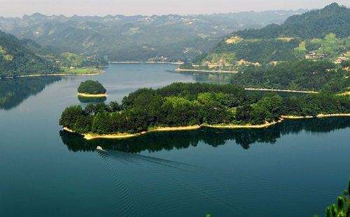 老鸛坪島,以白鶴、青鷺長年棲息而得名,島為橢圓形狀,島上古樹參天,枝遒葉茂。月亮島,形如湛藍湖水中的一輪滿月。島上四季常青,青松翠柏,鳥語花香。