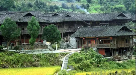 當背靠青山,面對綠水是其最佳選擇,屋基前低后高。所以木結構的吊樓式建筑應運而生樓外有耍子安有各式各樣的木欄,保留著土家先民干蘭式居屋的遺俗