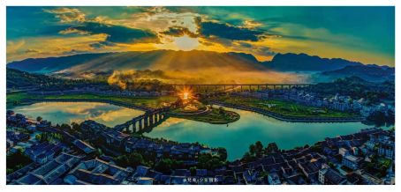 深秋的晚霞染紅天邊,這是獨屬水市的秋色。