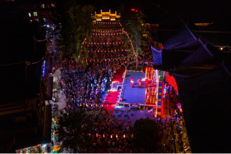 燈火璀璨的濯水古鎮(zhèn),人潮澎湃,伴隨著氣勢(shì)磅礴的鼓鑼之聲,重慶市黔江區(qū)旅投公司董事長(zhǎng)汪韜上臺(tái)致辭,一聲“筑鵲橋·渡天河”,鵲橋狂歡之夜正式拉開(kāi)序幕。別具一格的民族歌舞贏得了陣陣歡呼聲、掌聲。