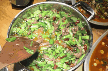 青菜牛肉是黔江煨鍋系列的代表菜之一。青菜與牛肉搭配起來(lái)可謂是天衣無(wú)縫,黔江的青菜牛肉和其他地方的略有不同,怎么個(gè)不同法呢?