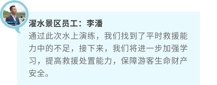 據(jù)悉,此次救援演練著重對預警信息發(fā)布、預警行動隊伍集結、前線物質、設備落實、搶險物質進行檢驗,使景區(qū)一線員工掌握應急救援方法,提高他們應對水上突發(fā)事故的快速反應能力、應急處理能力、以及協(xié)調作戰(zhàn)能力。