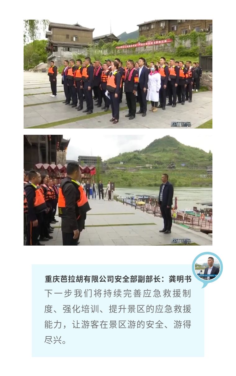 4月23日,濯水景區(qū)水上演練救援在古鎮(zhèn)水師碼頭舉行。演練模擬了阿蓬江上游突發(fā)暴雨天氣,在泄洪之際,一艘載客竹筏在返回碼頭50米處機器突發(fā)故障熄火,與下游正在回程的快艇發(fā)生碰撞,導致兩艘船只不同情況受損,并有乘客受傷。