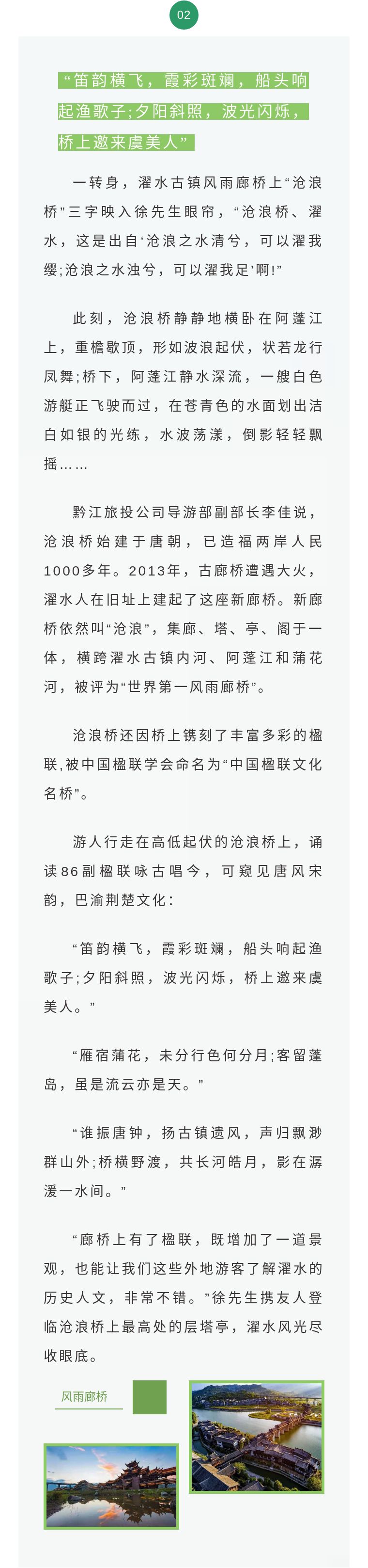 ▲濯水古鎮(zhèn)滄浪橋及橋上的楹聯(lián)。 黔江區(qū)委宣傳部供圖