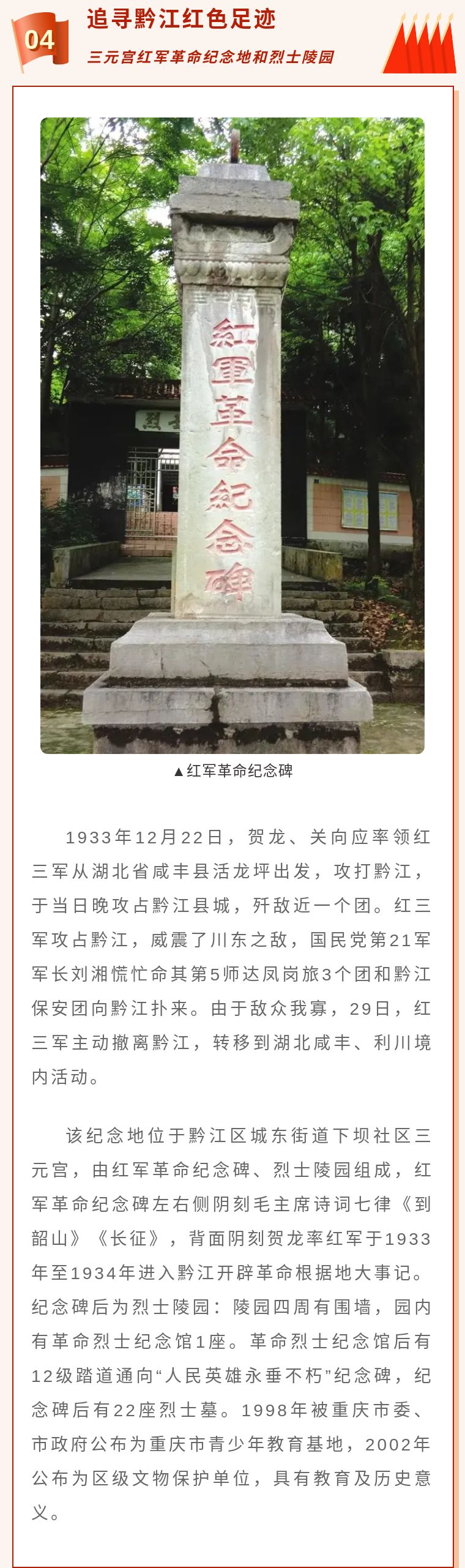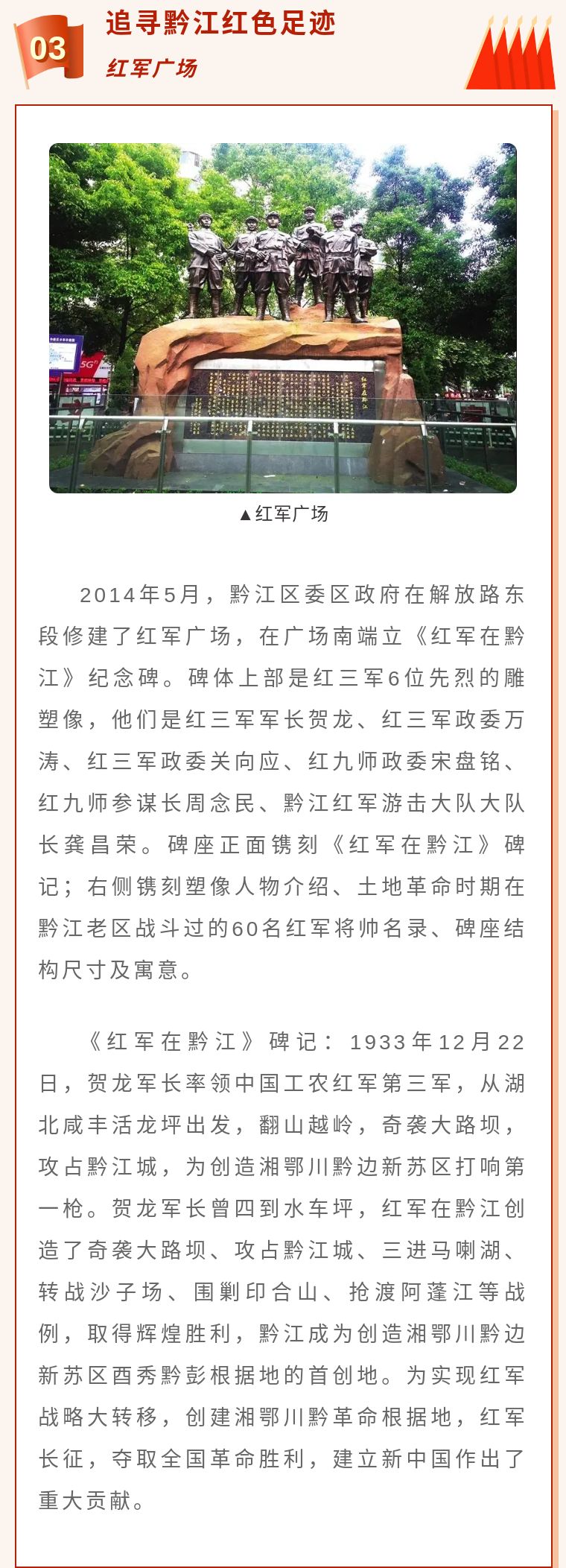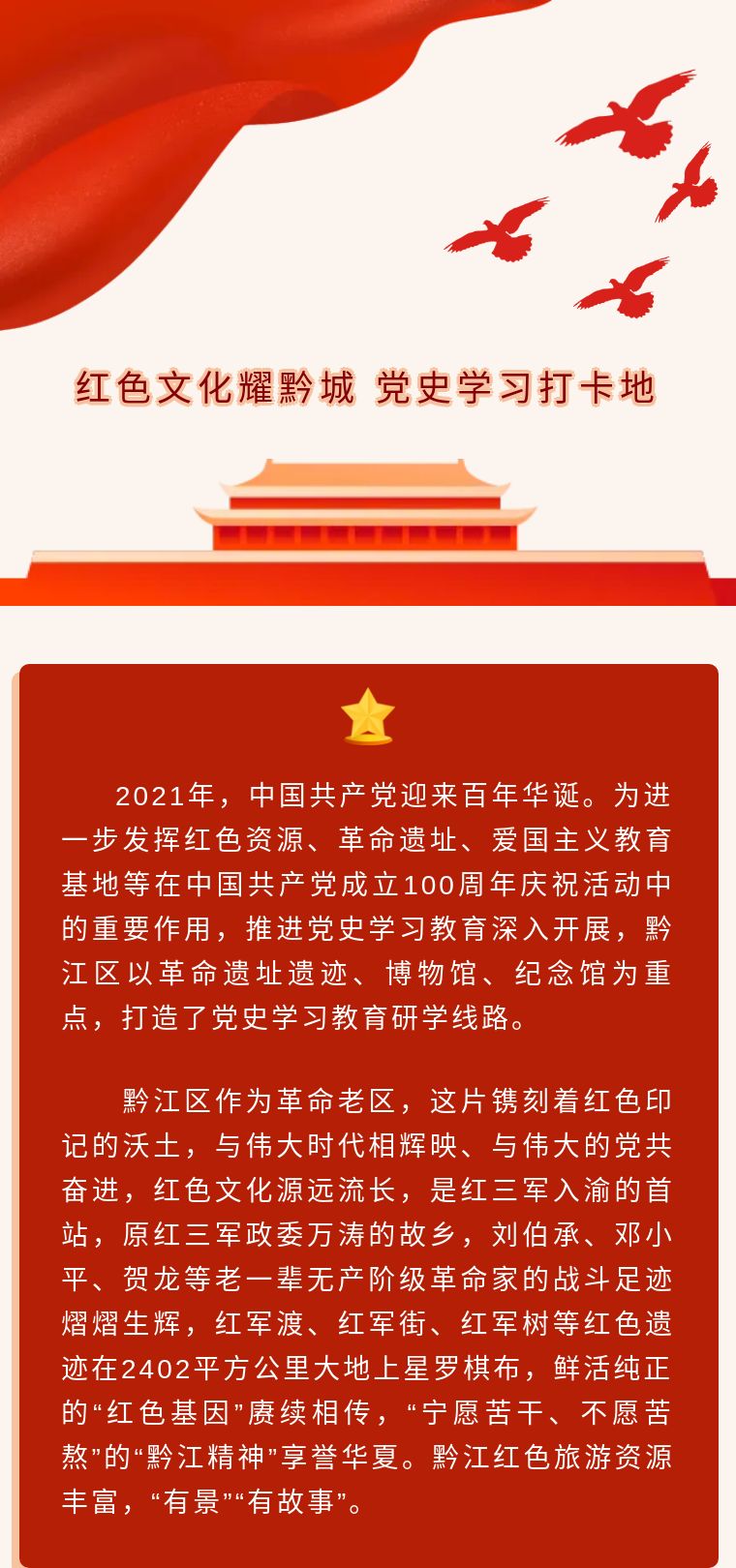 紅色文化耀黔城 黨史學(xué)習(xí)打卡地 ——黔江學(xué)黨史去哪兒線,感受紅色文化!