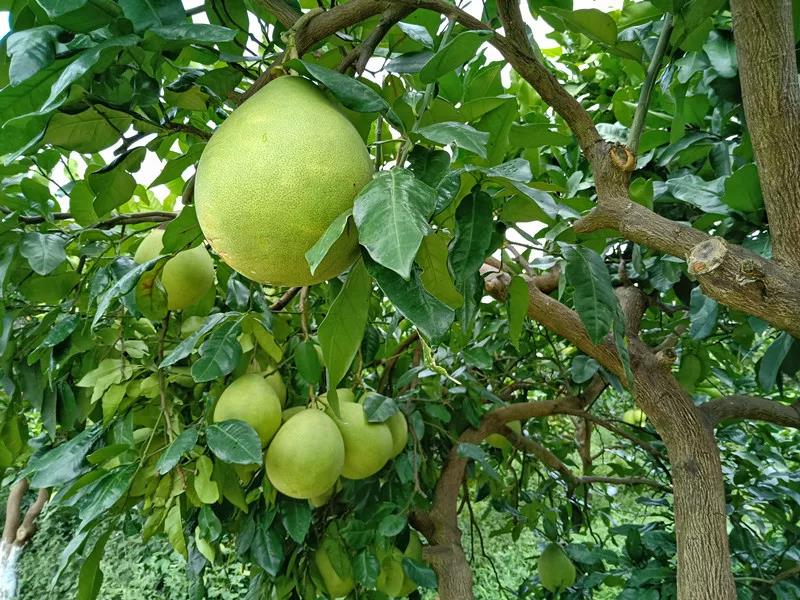 金黃的柚果掛滿枝頭若星辰般點(diǎn)綴在柚園的翠綠之中