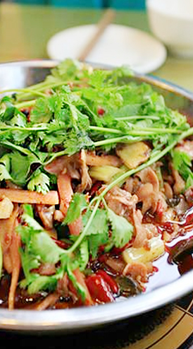黔江雞雜是黔江煨鍋系列的代表菜,運用土家烹飪方式,用雞腸、雞肝、雞心等雞內臟器官為原料,并把雞肉切..