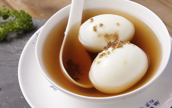 用油炸花生米,核桃仁、黃豆、米泡、苞谷泡等,打上三四個雞蛋,放入煮開的油茶內,味道鮮花,具山村風味..