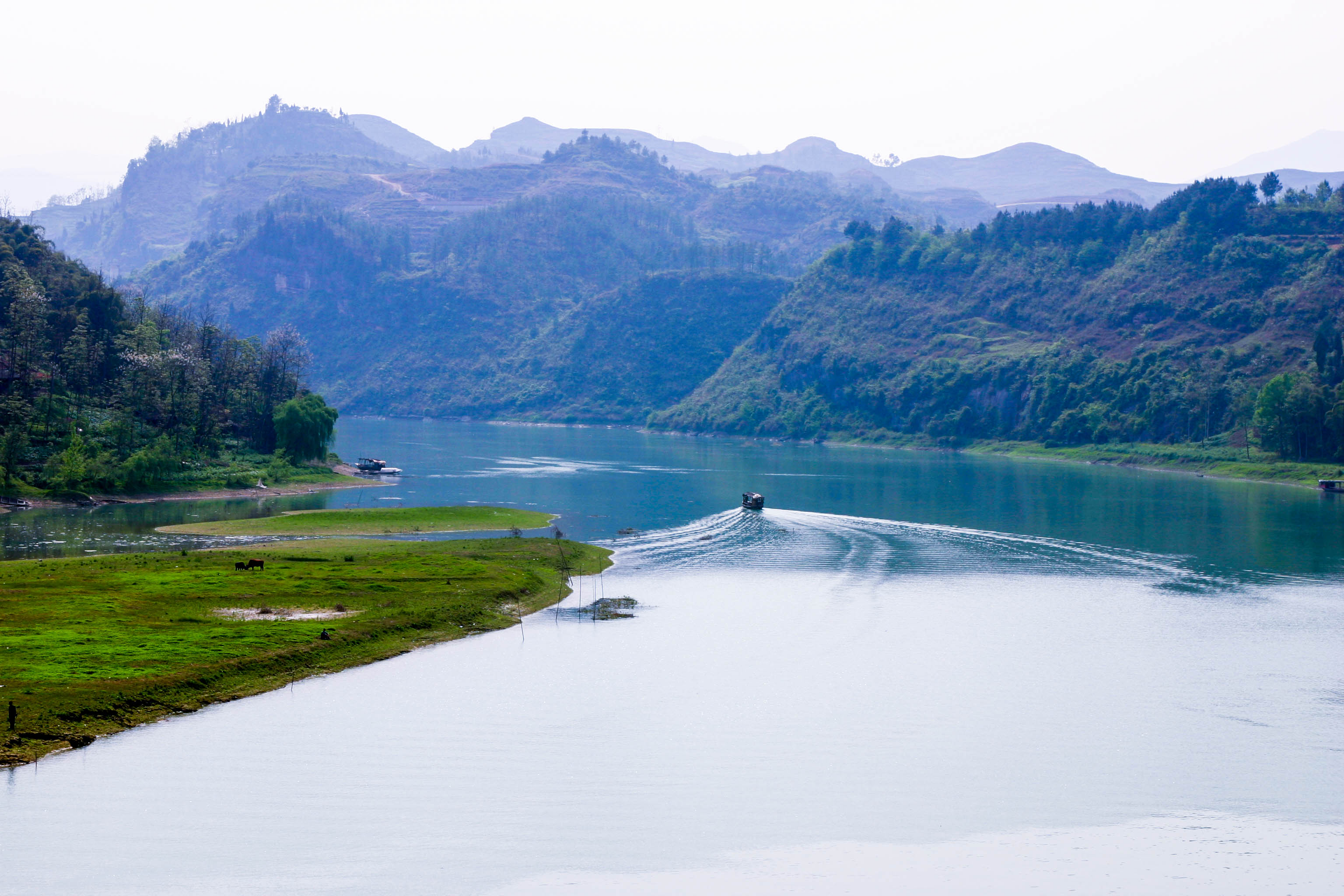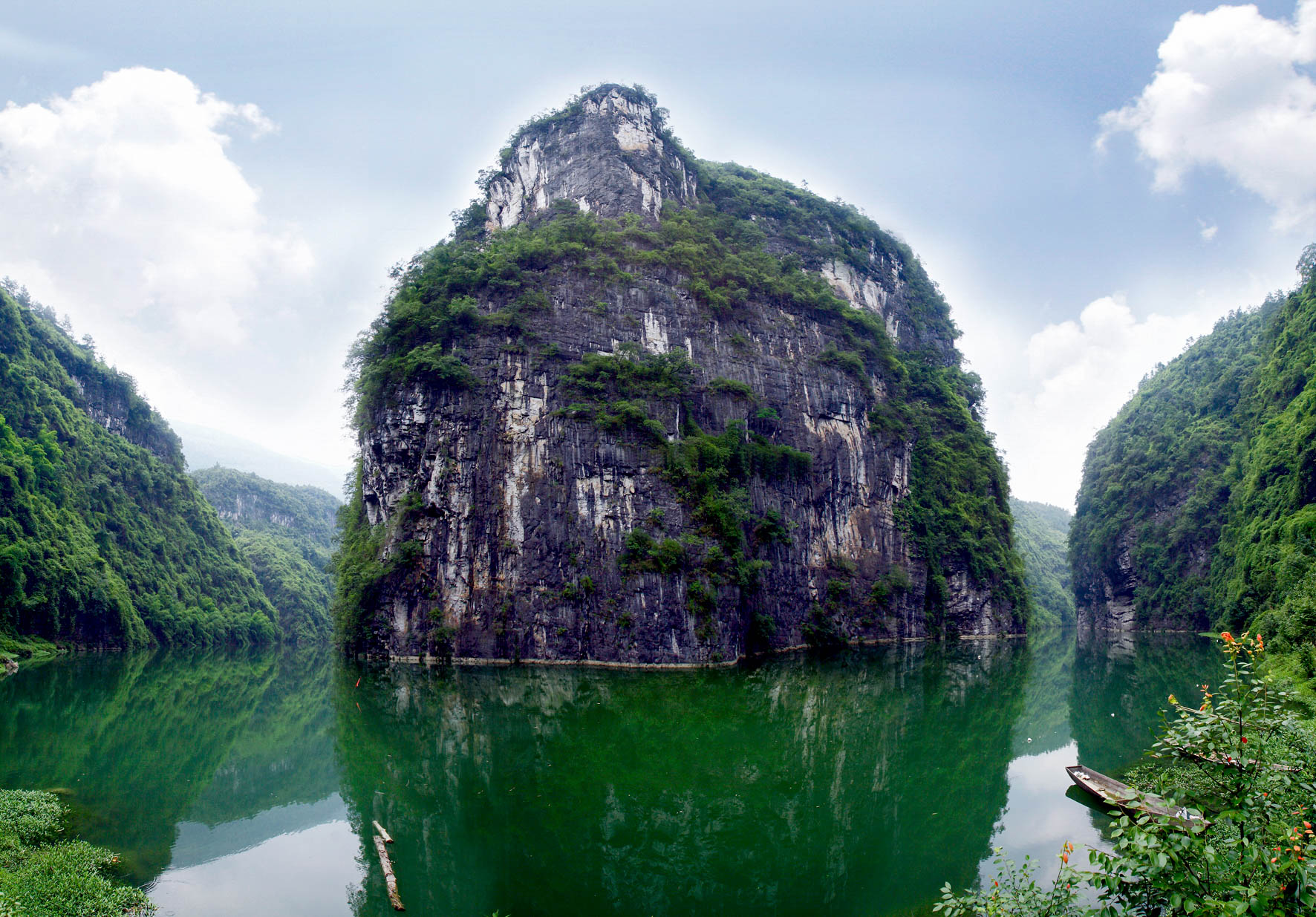 阿蓬江官渡峽位于重慶市黔江區(qū)馮家鎮(zhèn),距黔江城區(qū)18公里,因古驛道從這里船渡過江而得名,峽谷全長(zhǎng)15公里。官渡峽沿峽兩岸懸崖峭壁,江水蔚藍(lán)清澈,清幽雅致,景致迷人。