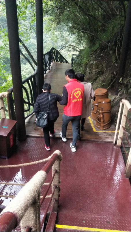 志愿者主動(dòng)摻扶行動(dòng)不便的游客
