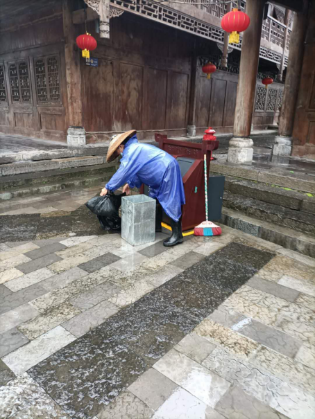工作人員風(fēng)雨無(wú)阻及時(shí)清理景區(qū)垃圾,只為給每一個(gè)游客留下最美濯水的印象。