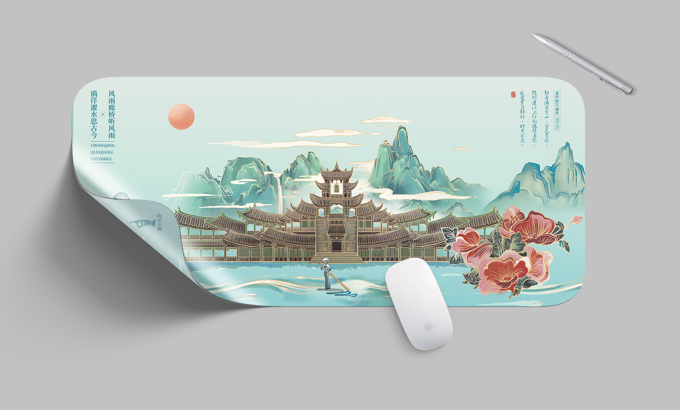 品名:濯水文創(chuàng)▪古濯如畫鼠標(biāo)墊大小兩款大款售價:39元標(biāo)準(zhǔn)款(小款)售價:12元產(chǎn)品說明:手繪岱山秀水間,檐角飛來鳳翅的風(fēng)雨廊橋唐鐘長韻段為鼠標(biāo)墊主視覺畫面,呈現(xiàn)秀美山水輝映錦繡人文的古韻意境之美。..